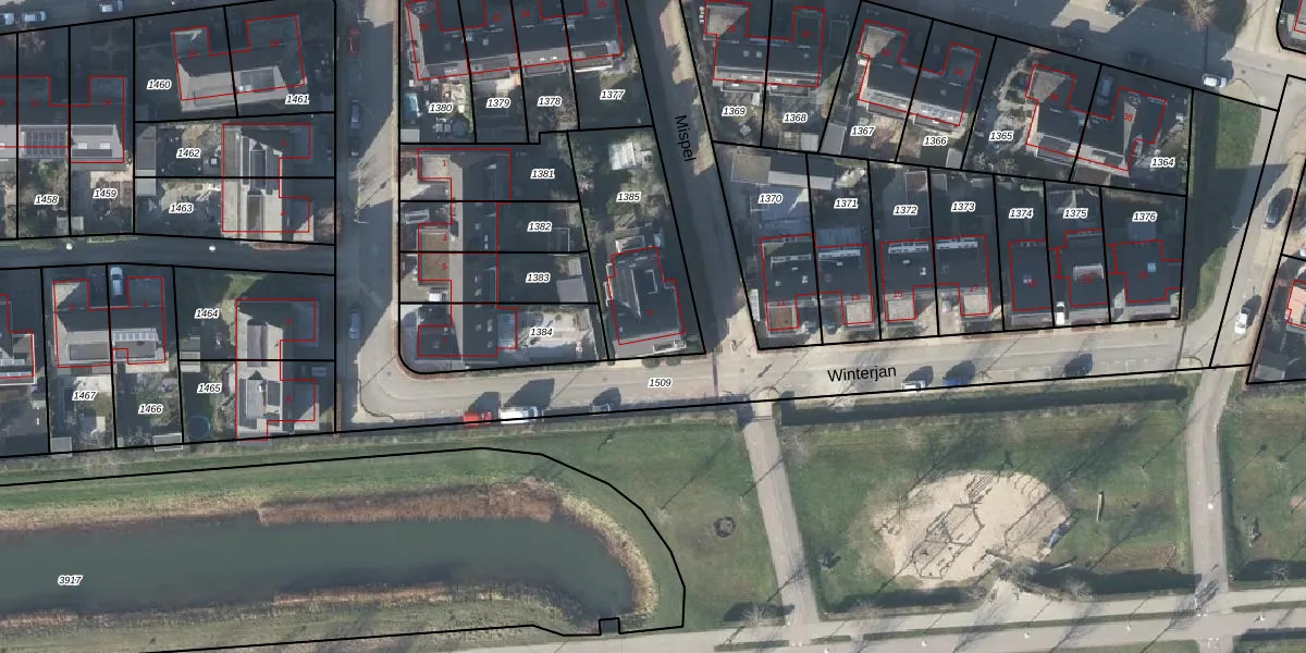 Het perceel waarop Winterjan 9 staat heeft een oppervlakte van 500 m². Dit is een groot perceel. De perceeloppervlakte wordt geregistreerd door het Kadaster. Gedetailleerde informatie over de maten van dit perceel kunt u vinden in het rapport Kadastrale kaart met maatvoering van Winterjan 9.