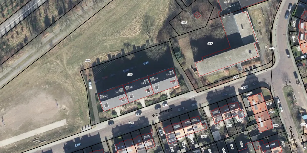 Het perceel waarop Witsenstraat 4-C staat heeft een oppervlakte van 2284 m². Dit is een zeer groot perceel. De perceeloppervlakte wordt geregistreerd door het Kadaster. Gedetailleerde informatie over de maten van dit perceel kunt u vinden in het rapport Kadastrale kaart met maatvoering van Witsenstraat 4-C.