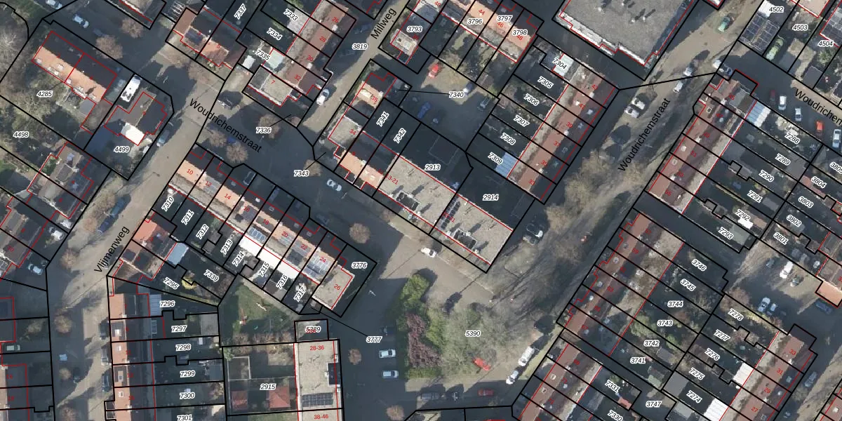 Het perceel waarop Woudrichemstraat 19 staat heeft een oppervlakte van 341 m². Dit is een groot perceel. De perceeloppervlakte wordt geregistreerd door het Kadaster. Gedetailleerde informatie over de maten van dit perceel kunt u vinden in het rapport Kadastrale kaart met maatvoering van Woudrichemstraat 19.