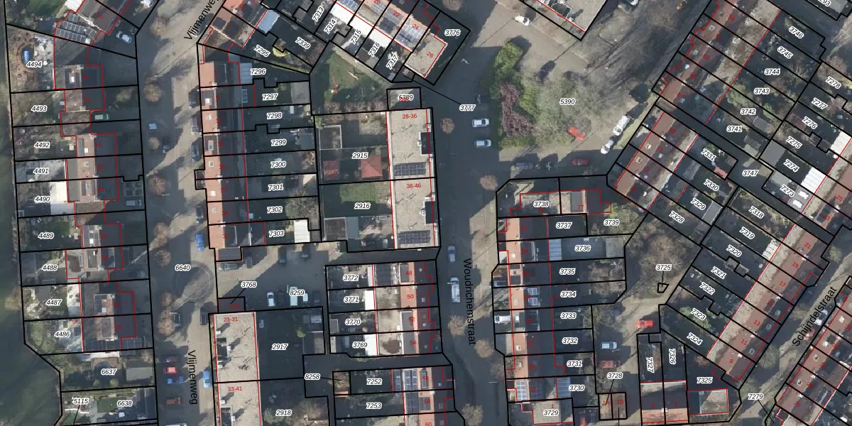 Het perceel waarop Woudrichemstraat 42 staat heeft een oppervlakte van 436 m². Dit is een groot perceel. De perceeloppervlakte wordt geregistreerd door het Kadaster. Gedetailleerde informatie over de maten van dit perceel kunt u vinden in het rapport Kadastrale kaart met maatvoering van Woudrichemstraat 42.