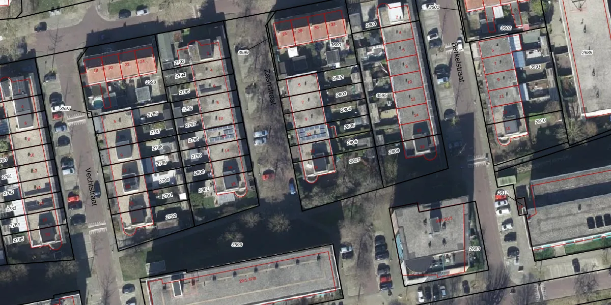Gebruik de zoekbalk of klik op een perceel voor informatie over de adressen binnen dit perceel.