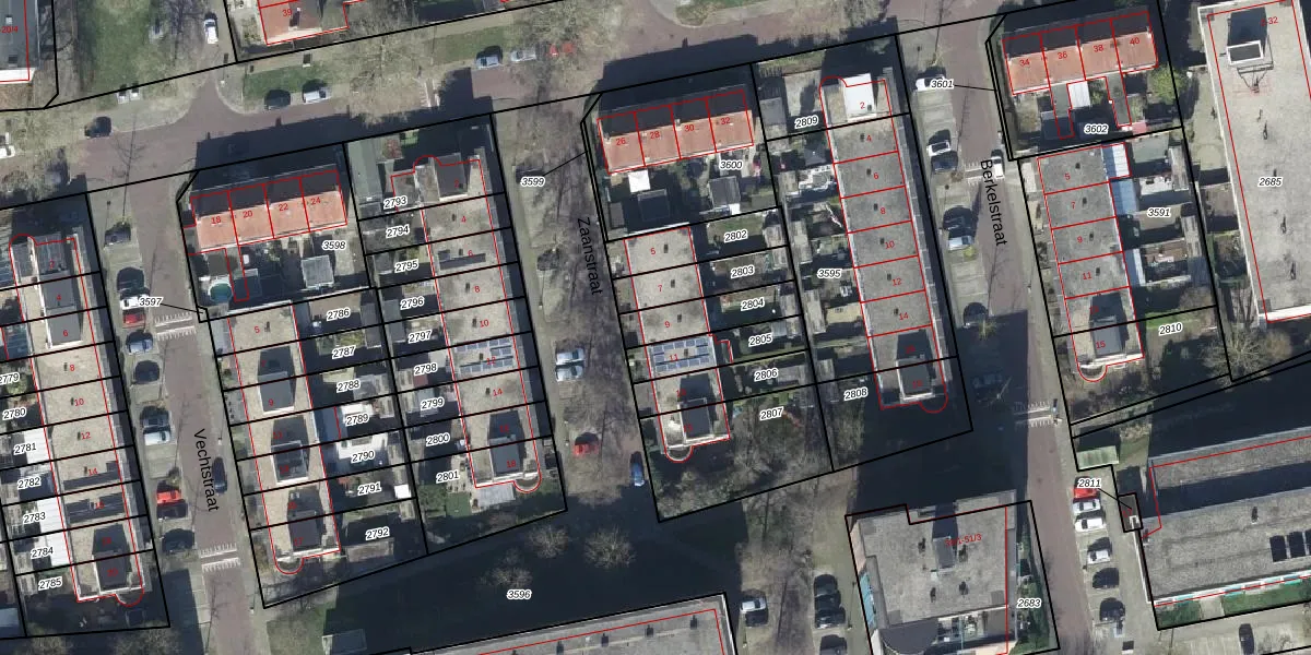 Gebruik de zoekbalk of klik op een perceel voor informatie over de adressen binnen dit perceel.