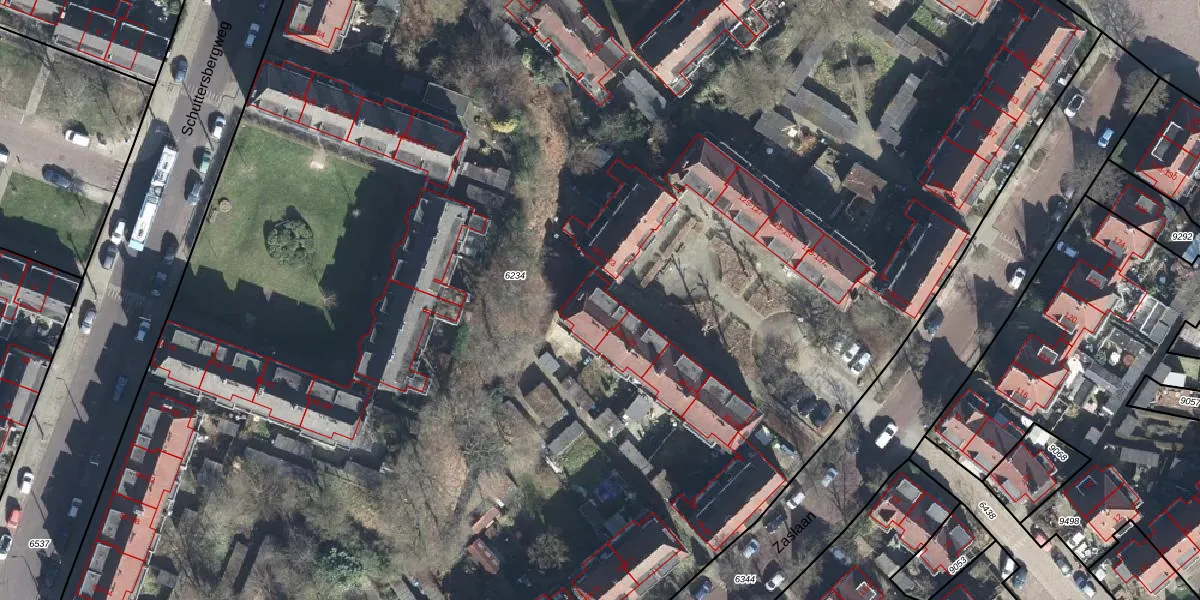 Het perceel waarop Zaslaan 105 staat heeft een oppervlakte van 2,1 ha. Dit is een zeer groot perceel. De perceeloppervlakte wordt geregistreerd door het Kadaster. Gedetailleerde informatie over de maten van dit perceel kunt u vinden in het rapport Kadastrale kaart met maatvoering van Zaslaan 105.