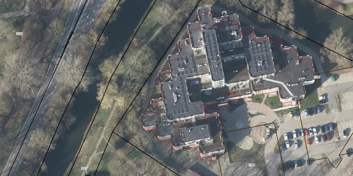 Het perceel waarop het adres ligt is AHM04-AE-7719. De afkorting 'AHM04' staat voor kadastrale gemeente Arnhem. De oppervlakte van het perceel is 1,1 ha. Dat is groter dan gemiddeld in Arnhem, waar de gemiddelde perceeloppervlakte op 686,91 m² ligt. Het grootste perceel in de kadastrale gemeente is 23,1 ha. Het kleinste perceel heeft een oppervlakte van 0 m². Er zijn 96 adressen aanwezig op het perceel. De huidige grenzen van het perceel zijn digitaal in de Basisregistratie Kadaster (BRK) geregistreerd op 05-12-2024.