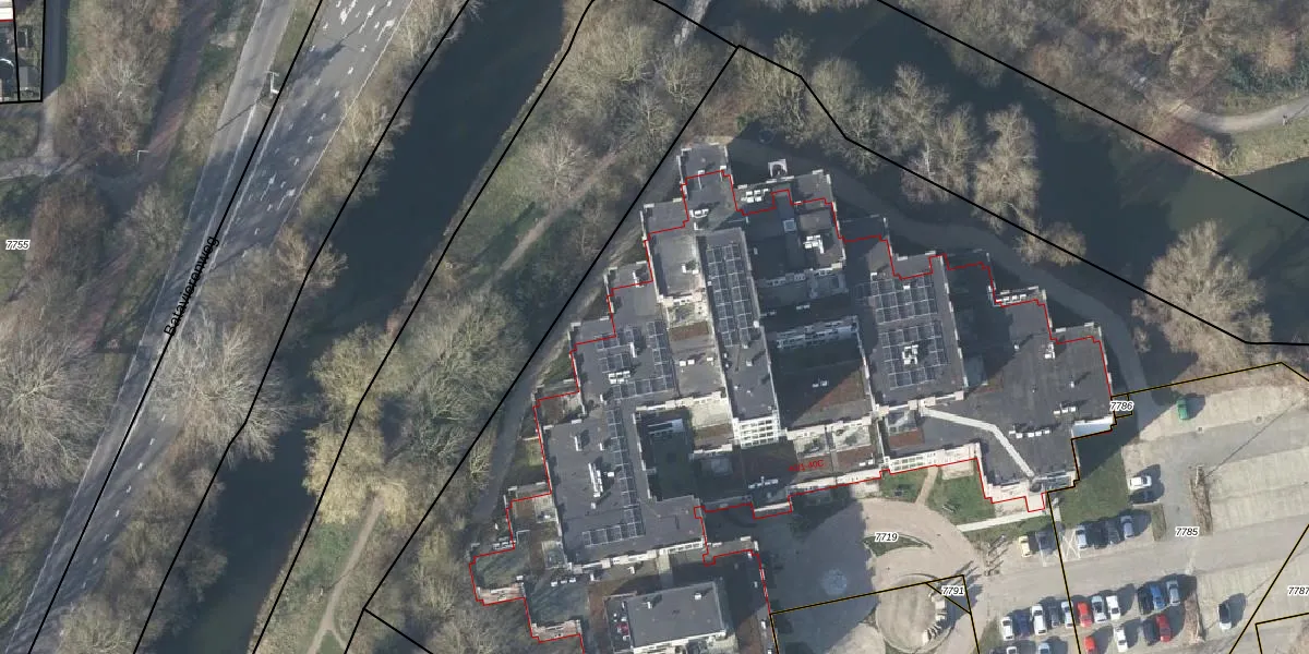 Het perceel waarop het adres ligt is AHM04-AE-7719. De afkorting 'AHM04' staat voor kadastrale gemeente Arnhem. De oppervlakte van het perceel is 1,1 ha. Dat is groter dan gemiddeld in Arnhem, waar de gemiddelde perceeloppervlakte op 686,91 m² ligt. Het grootste perceel in de kadastrale gemeente is 23,1 ha. Het kleinste perceel heeft een oppervlakte van 0 m². Er zijn 96 adressen aanwezig op het perceel. De laatste wijziging in het de Basisregistratie Kadaster (BRK) was op 05-12-2024.
