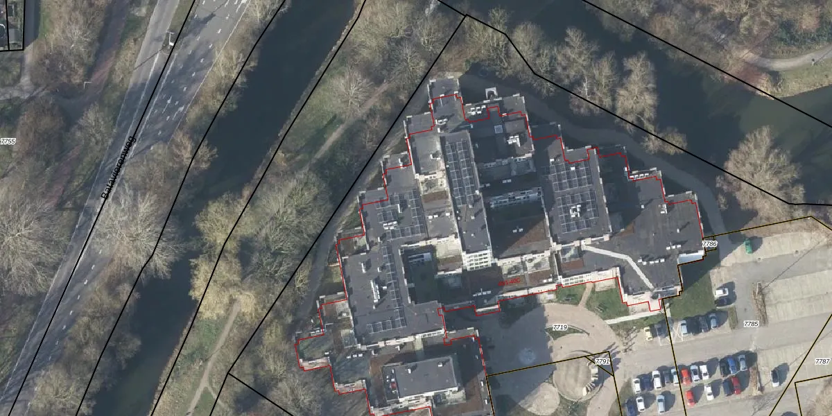 Het perceel waarop het adres ligt is AHM04-AE-7719. De afkorting 'AHM04' staat voor kadastrale gemeente Arnhem. De oppervlakte van het perceel is 1,1 ha. Dat is groter dan gemiddeld in Arnhem, waar de gemiddelde perceeloppervlakte op 686,91 m² ligt. Het grootste perceel in de kadastrale gemeente is 23,1 ha. Het kleinste perceel heeft een oppervlakte van 0 m². Er zijn 96 adressen aanwezig op het perceel. De huidige grenzen van het perceel zijn digitaal in de Basisregistratie Kadaster (BRK) geregistreerd op 05-12-2024.