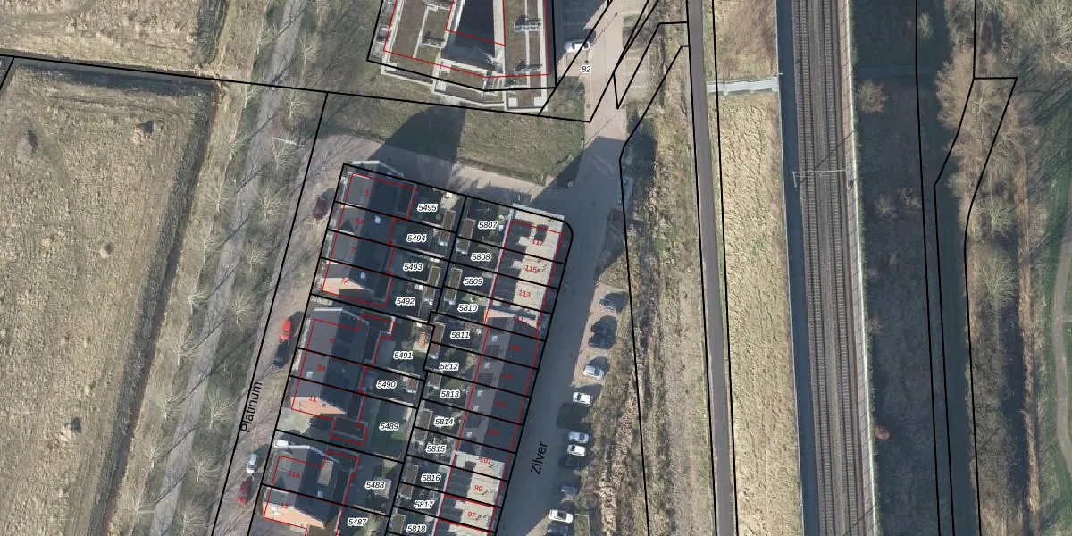Het perceel waarop Zilver 115 staat heeft een oppervlakte van 101 m². Dit is een middelgroot perceel. De perceeloppervlakte wordt geregistreerd door het Kadaster. Gedetailleerde informatie over de maten van dit perceel kunt u vinden in het rapport Kadastrale kaart met maatvoering van Zilver 115.