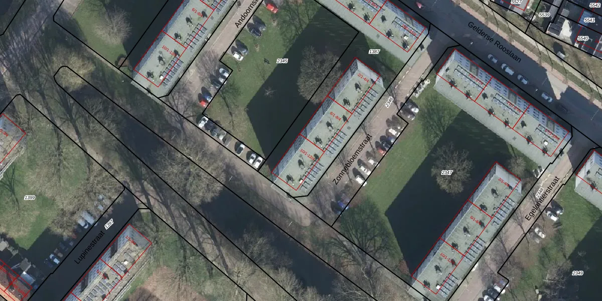 Het perceel waarop Zonnebloemstraat 10-4 staat heeft een oppervlakte van 1850 m². Dit is een zeer groot perceel. De perceeloppervlakte wordt geregistreerd door het Kadaster. Gedetailleerde informatie over de maten van dit perceel kunt u vinden in het rapport Kadastrale kaart met maatvoering van Zonnebloemstraat 10-4.