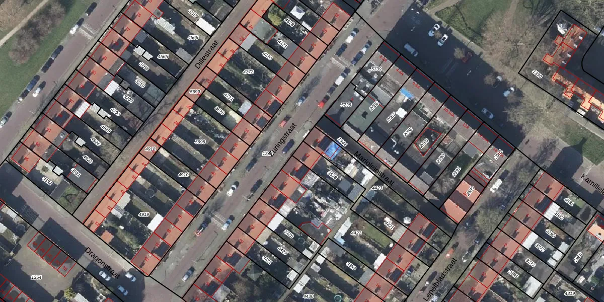 Gebruik de zoekbalk of klik op een perceel voor informatie over de adressen binnen dit perceel.