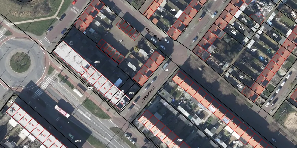 Het perceel waarop Zuringstraat 58 staat heeft een oppervlakte van 1607 m². Dit is een zeer groot perceel. De perceeloppervlakte wordt geregistreerd door het Kadaster. Gedetailleerde informatie over de maten van dit perceel kunt u vinden in het rapport Kadastrale kaart met maatvoering van Zuringstraat 58.