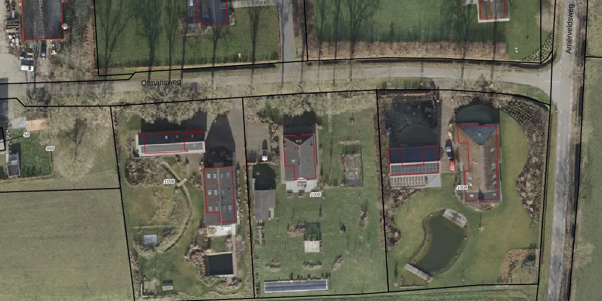 Het perceel waarop Otmansweg 1-d staat heeft een oppervlakte van 3000 m². Dit is een zeer groot perceel. De perceeloppervlakte wordt geregistreerd door het Kadaster. Gedetailleerde informatie over de maten van dit perceel kunt u vinden in het rapport Kadastrale kaart met maatvoering van Otmansweg 1-d.