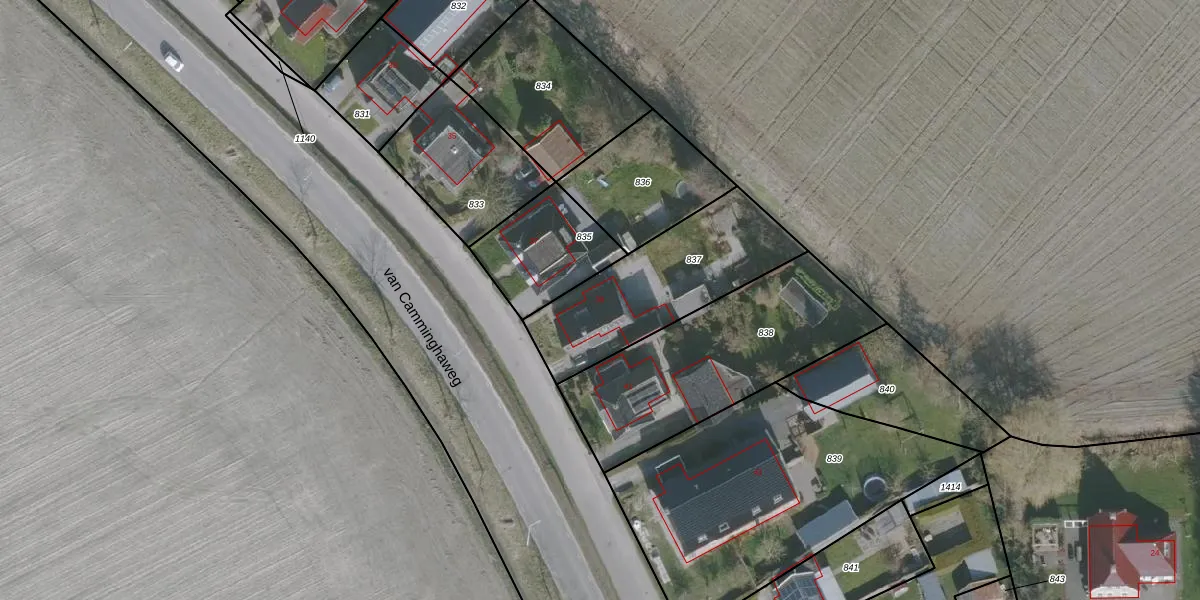 Het perceel waarop van Camminghaweg 39 staat heeft een oppervlakte van 617 m². Dit is een groot perceel. De perceeloppervlakte wordt geregistreerd door het Kadaster. Gedetailleerde informatie over de maten van dit perceel kunt u vinden in het rapport Kadastrale kaart met maatvoering van van Camminghaweg 39.