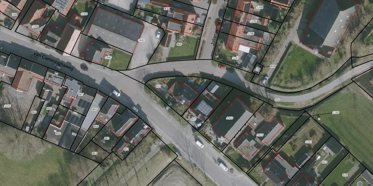 van Camminghaweg 9 is gelegen op kadastraal perceel ARM00E819. Deze kadastrale aanduiding is uniek en wordt gebruikt door het Kadaster om eigendomsrechten en andere zakelijke rechten vast te leggen. Het perceel maakt onderdeel uit van de kadastrale gemeente Arum.