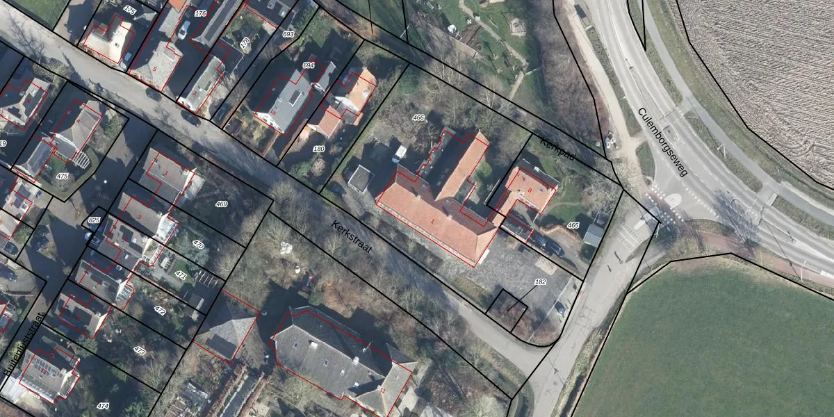 Kerkstraat 1-b is gelegen op kadastraal perceel BRN00N466. Deze kadastrale aanduiding is uniek en wordt gebruikt door het Kadaster om eigendomsrechten en andere zakelijke rechten vast te leggen. Het perceel maakt onderdeel uit van de kadastrale gemeente Buren.