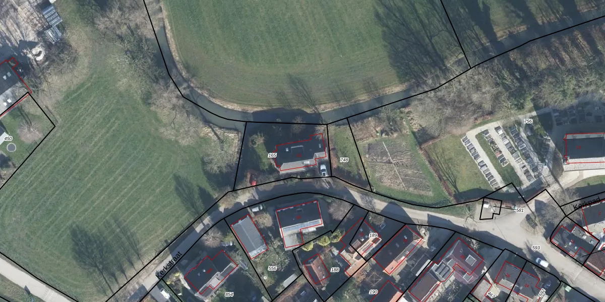 Het perceel waarop Kerkstraat 15 staat heeft een oppervlakte van 590 m². Dit is een groot perceel. De perceeloppervlakte wordt geregistreerd door het Kadaster. Gedetailleerde informatie over de maten van dit perceel kunt u vinden in het rapport Kadastrale kaart met maatvoering van Kerkstraat 15.