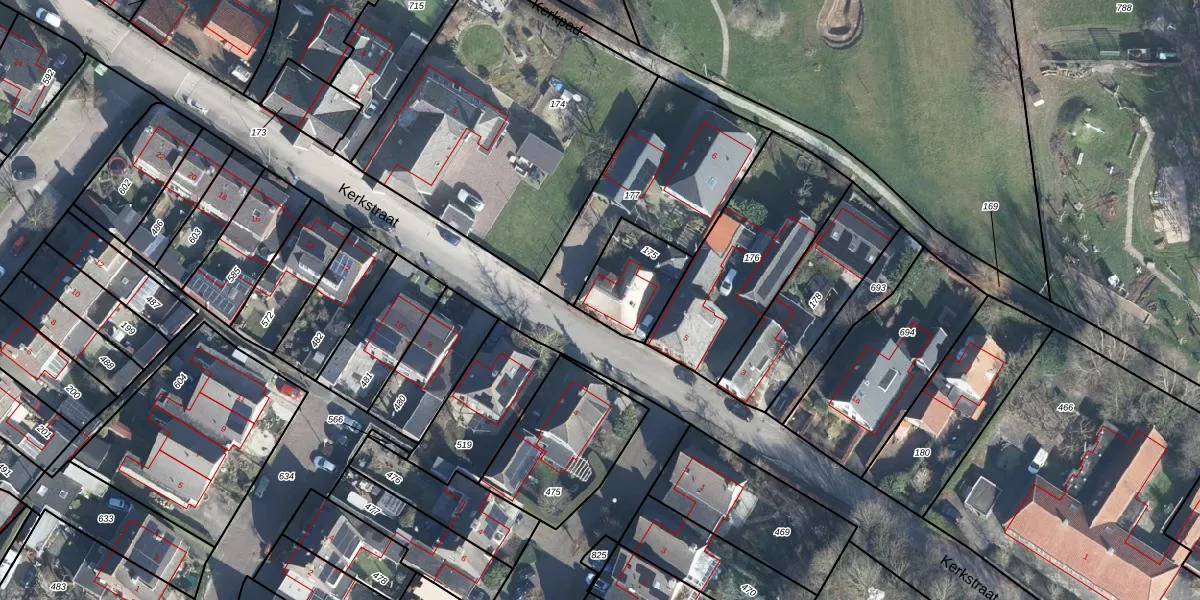 Kerkstraat 7 is gelegen op kadastraal perceel BRN00N175. Deze kadastrale aanduiding is uniek en wordt gebruikt door het Kadaster om eigendomsrechten en andere zakelijke rechten vast te leggen. Het perceel maakt onderdeel uit van de kadastrale gemeente Buren.