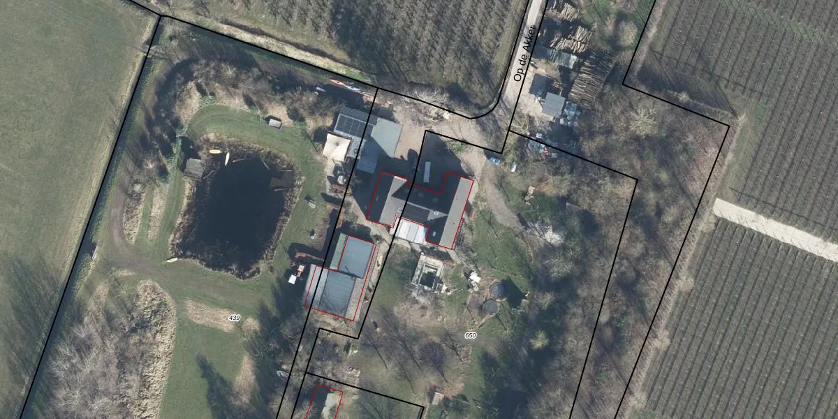 Het perceel waarop Op de Akker 2 staat heeft een oppervlakte van 5910 m². Dit is een zeer groot perceel. De perceeloppervlakte wordt geregistreerd door het Kadaster. Gedetailleerde informatie over de maten van dit perceel kunt u vinden in het rapport Kadastrale kaart met maatvoering van Op de Akker 2.