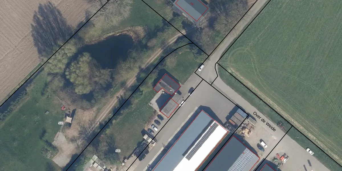 Over de Weide 2 is gelegen op kadastraal perceel BRN00N542. Deze kadastrale aanduiding is uniek en wordt gebruikt door het Kadaster om eigendomsrechten en andere zakelijke rechten vast te leggen. Het perceel maakt onderdeel uit van de kadastrale gemeente Buren.