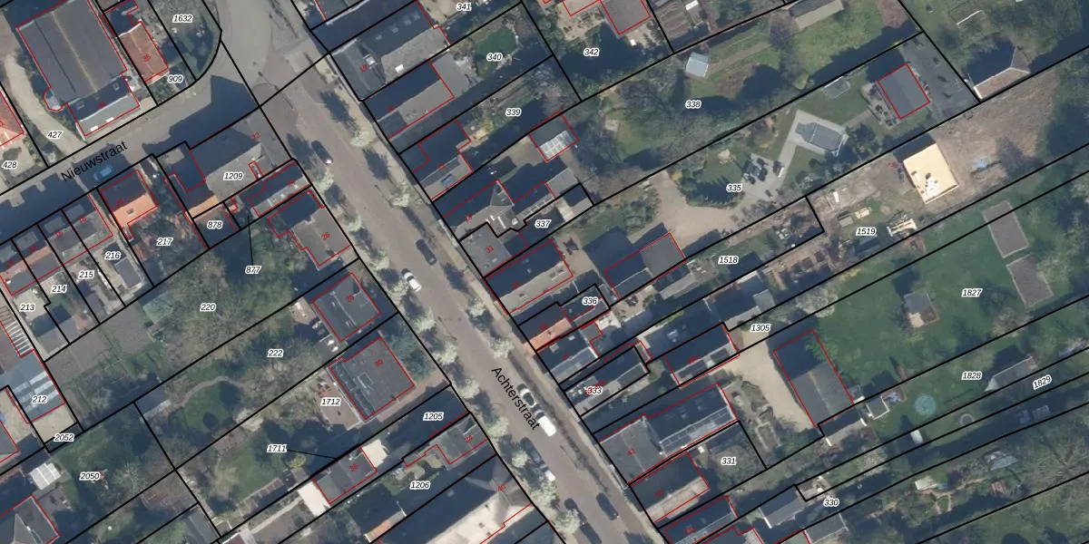 Het perceel waarop Achterstraat 33 staat heeft een oppervlakte van 1470 m². Dit is een zeer groot perceel. De perceeloppervlakte wordt geregistreerd door het Kadaster. Gedetailleerde informatie over de maten van dit perceel kunt u vinden in het rapport Kadastrale kaart met maatvoering van Achterstraat 33.