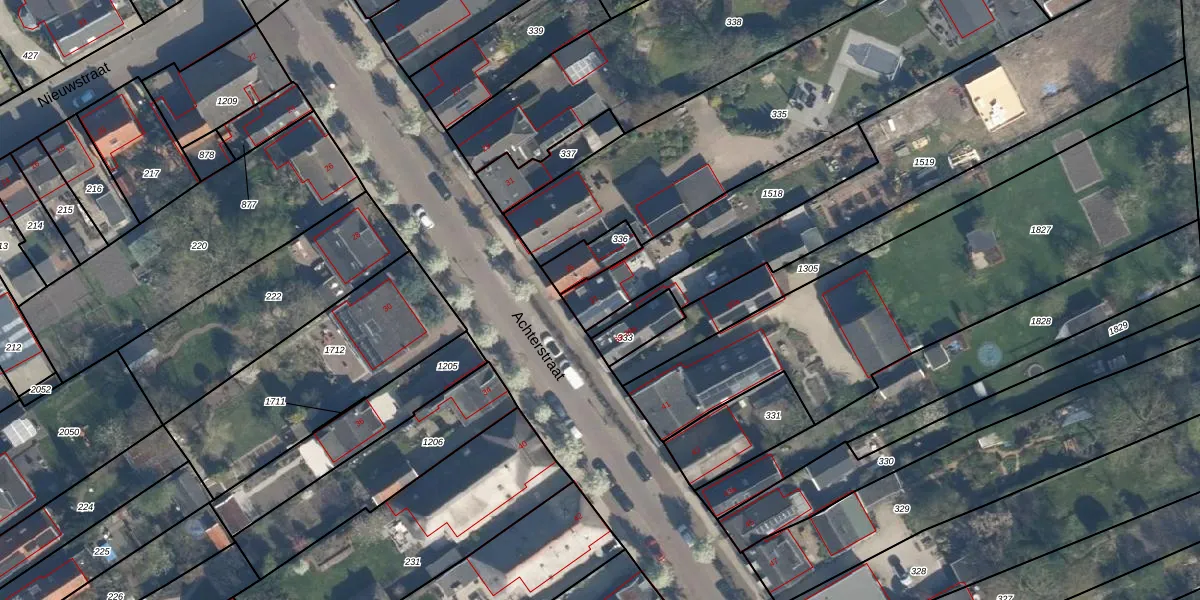 Het perceel waarop Achterstraat 37 staat heeft een oppervlakte van 415 m². Dit is een groot perceel. De perceeloppervlakte wordt geregistreerd door het Kadaster. Gedetailleerde informatie over de maten van dit perceel kunt u vinden in het rapport Kadastrale kaart met maatvoering van Achterstraat 37.