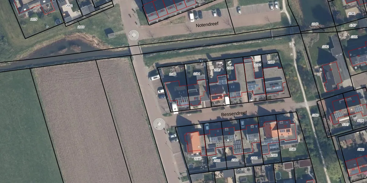 Gebruik de zoekbalk of klik op een perceel voor informatie over de adressen binnen dit perceel.
