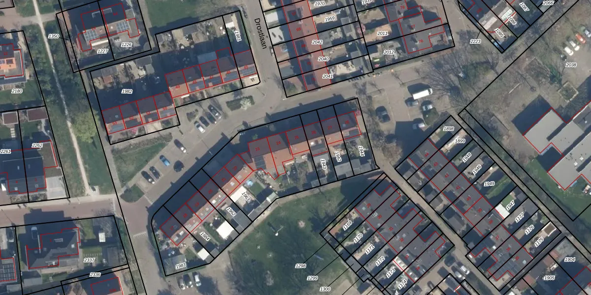 Het perceel waarop Drostlaan 25 staat heeft een oppervlakte van 820 m². Dit is een groot perceel. De perceeloppervlakte wordt geregistreerd door het Kadaster. Gedetailleerde informatie over de maten van dit perceel kunt u vinden in het rapport Kadastrale kaart met maatvoering van Drostlaan 25.