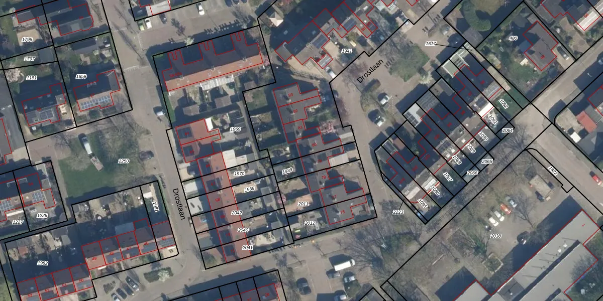 Het perceel waarop Drostlaan 80 staat heeft een oppervlakte van 3026 m². Dit is een zeer groot perceel. De perceeloppervlakte wordt geregistreerd door het Kadaster. Gedetailleerde informatie over de maten van dit perceel kunt u vinden in het rapport Kadastrale kaart met maatvoering van Drostlaan 80.