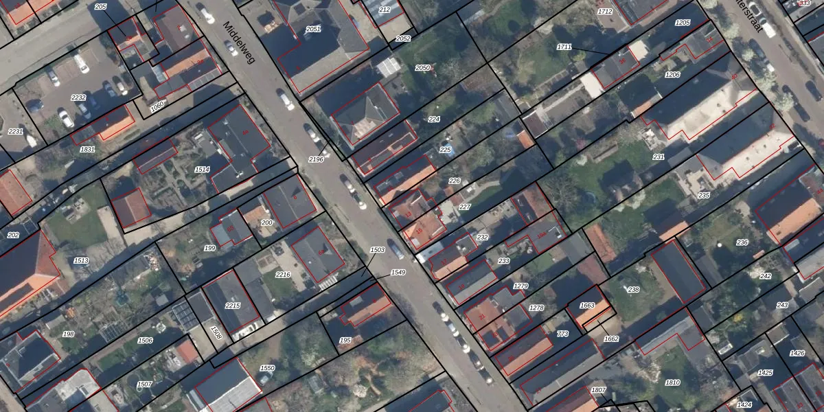 Het perceel waarop Middelweg 13 staat heeft een oppervlakte van 296 m². Dit is een middelgroot perceel. De perceeloppervlakte wordt geregistreerd door het Kadaster. Gedetailleerde informatie over de maten van dit perceel kunt u vinden in het rapport Kadastrale kaart met maatvoering van Middelweg 13.