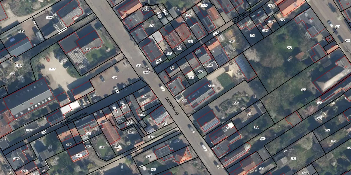 Middelweg 39 is gelegen op kadastraal perceel APR00A259. Deze kadastrale aanduiding is uniek en wordt gebruikt door het Kadaster om eigendomsrechten en andere zakelijke rechten vast te leggen. Het perceel maakt onderdeel uit van de kadastrale gemeente Asperen.