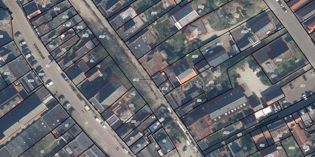Het perceel waarop Minstraat 10 staat heeft een oppervlakte van 65 m². Dit is een klein perceel. De perceeloppervlakte wordt geregistreerd door het Kadaster. Gedetailleerde informatie over de maten van dit perceel kunt u vinden in het rapport Kadastrale kaart met maatvoering van Minstraat 10.