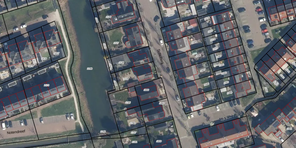 Het perceel waarop Schutterij 1 staat heeft een oppervlakte van 334 m². Dit is een groot perceel. De perceeloppervlakte wordt geregistreerd door het Kadaster. Gedetailleerde informatie over de maten van dit perceel kunt u vinden in het rapport Kadastrale kaart met maatvoering van Schutterij 1.