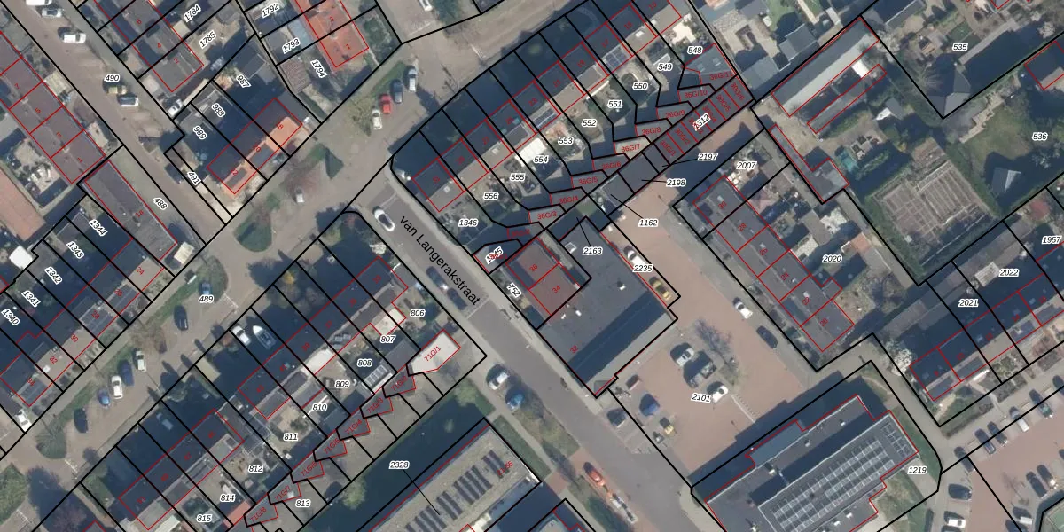 van Langerakstraat 36 is gelegen op kadastraal perceel APR00A752. Deze kadastrale aanduiding is uniek en wordt gebruikt door het Kadaster om eigendomsrechten en andere zakelijke rechten vast te leggen. Het perceel maakt onderdeel uit van de kadastrale gemeente Asperen.