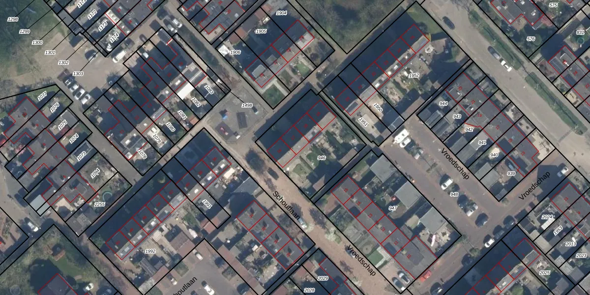 Het perceel waarop Vroedschap 17 staat heeft een oppervlakte van 725 m². Dit is een groot perceel. De perceeloppervlakte wordt geregistreerd door het Kadaster. Gedetailleerde informatie over de maten van dit perceel kunt u vinden in het rapport Kadastrale kaart met maatvoering van Vroedschap 17.