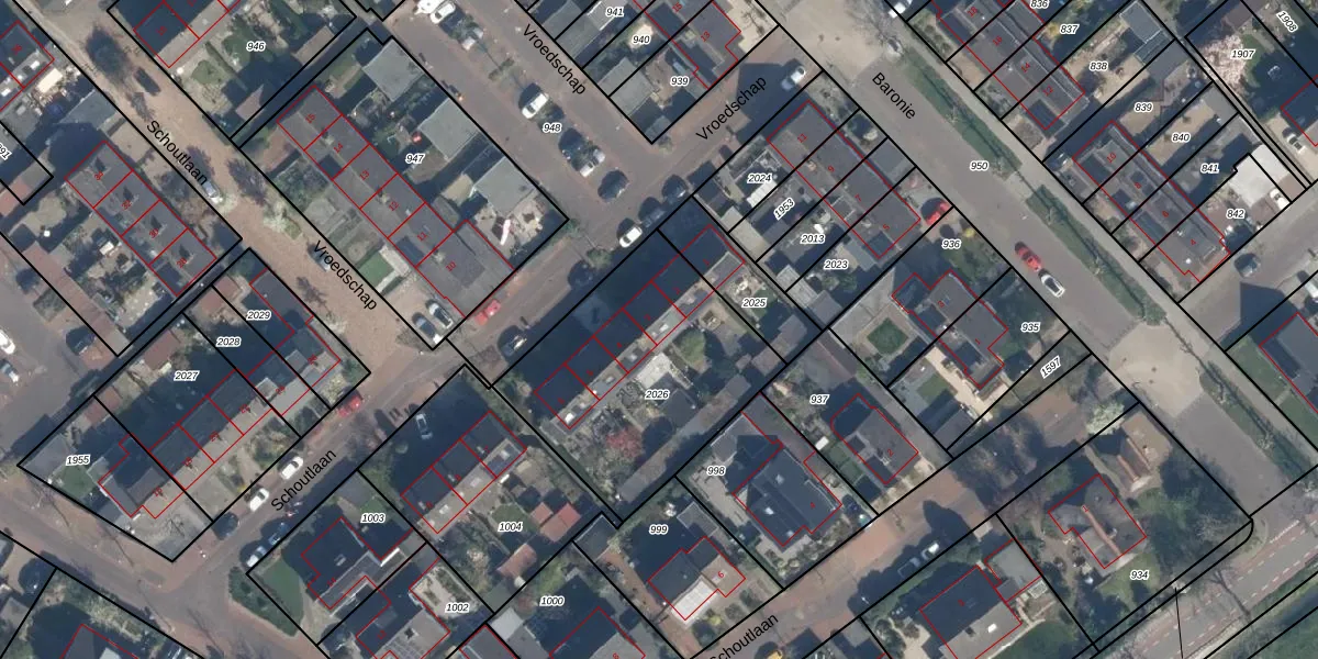 Het perceel waarop Vroedschap 3 staat heeft een oppervlakte van 990 m². Dit is een groot perceel. De perceeloppervlakte wordt geregistreerd door het Kadaster. Gedetailleerde informatie over de maten van dit perceel kunt u vinden in het rapport Kadastrale kaart met maatvoering van Vroedschap 3.