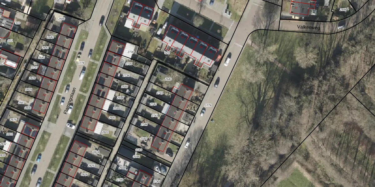 Gebruik de zoekbalk of klik op een perceel voor informatie over de adressen binnen dit perceel.