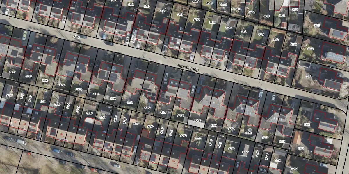 Gebruik de zoekbalk of klik op een perceel voor informatie over de adressen binnen dit perceel.