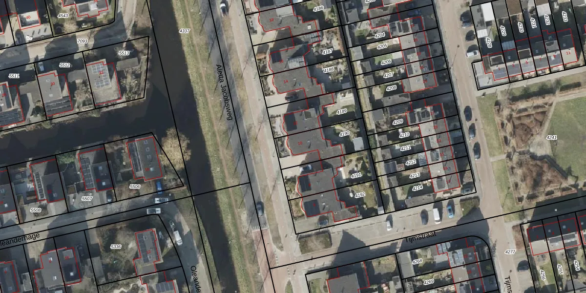Het perceel waarop Aletta Jacobsweg 10 staat heeft een oppervlakte van 338 m². Dit is een groot perceel. De perceeloppervlakte wordt geregistreerd door het Kadaster. Gedetailleerde informatie over de maten van dit perceel kunt u vinden in het rapport Kadastrale kaart met maatvoering van Aletta Jacobsweg 10.