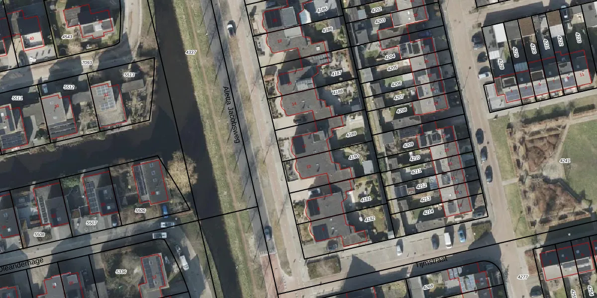 Het perceel waarop Aletta Jacobsweg 12 staat heeft een oppervlakte van 337 m². Dit is een groot perceel. De perceeloppervlakte wordt geregistreerd door het Kadaster. Gedetailleerde informatie over de maten van dit perceel kunt u vinden in het rapport Kadastrale kaart met maatvoering van Aletta Jacobsweg 12.