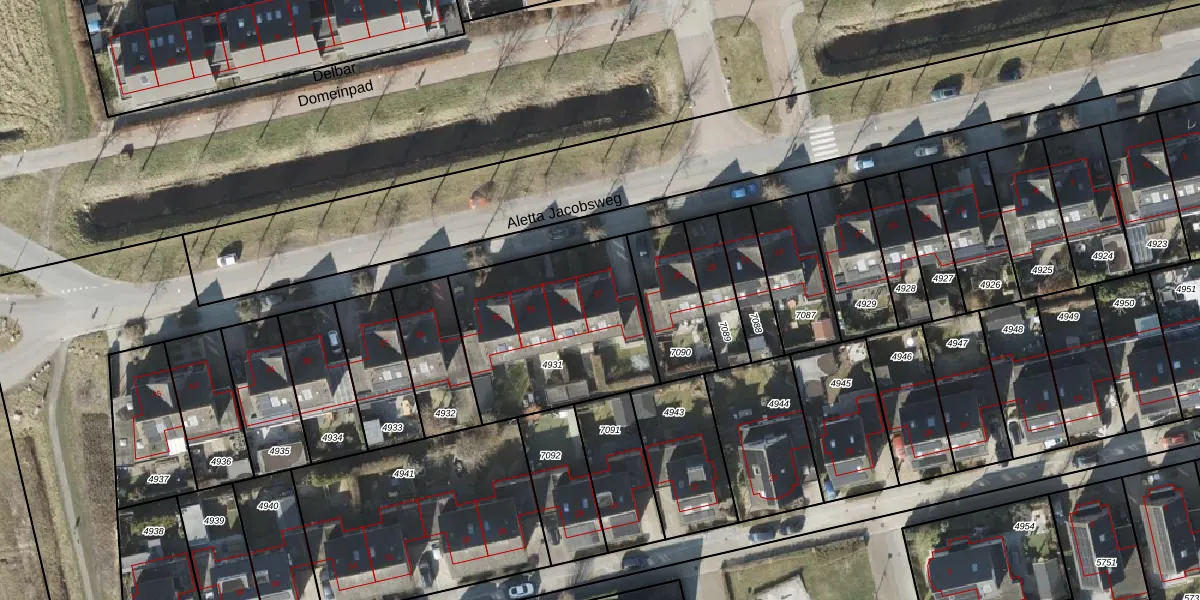 Het perceel waarop Aletta Jacobsweg 27 staat heeft een oppervlakte van 781 m². Dit is een groot perceel. De perceeloppervlakte wordt geregistreerd door het Kadaster. Gedetailleerde informatie over de maten van dit perceel kunt u vinden in het rapport Kadastrale kaart met maatvoering van Aletta Jacobsweg 27.