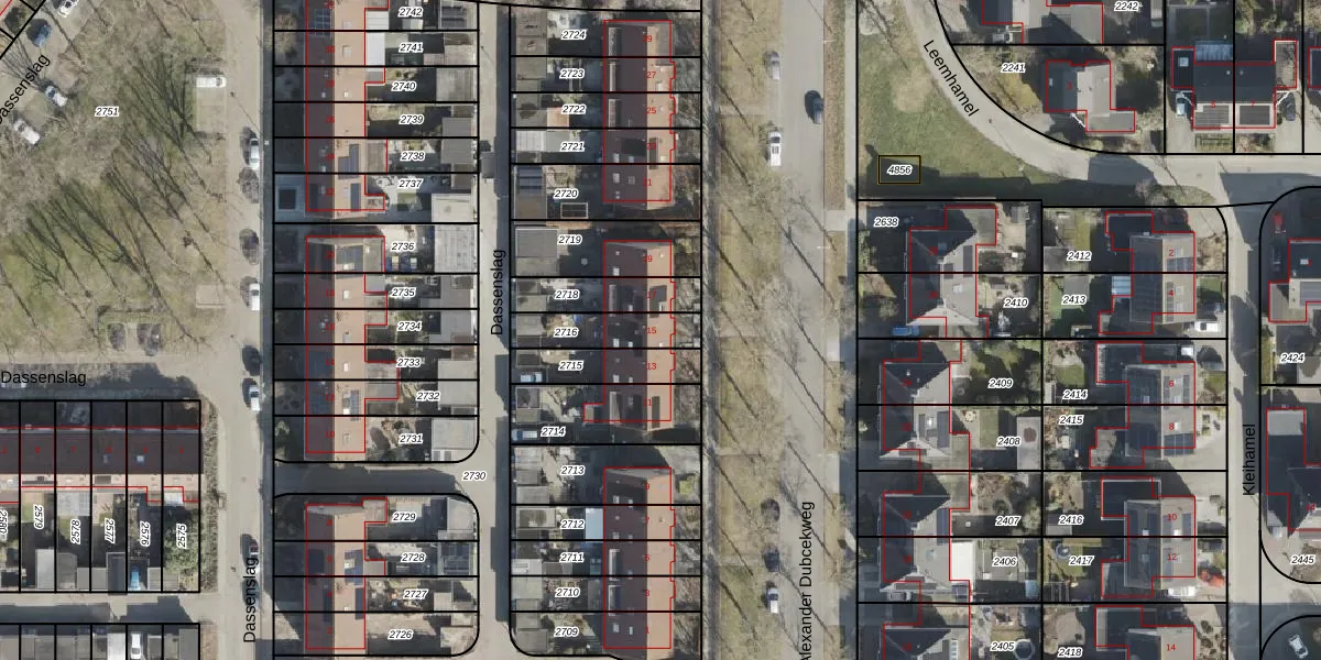 Gebruik de zoekbalk of klik op een perceel voor informatie over de adressen binnen dit perceel.