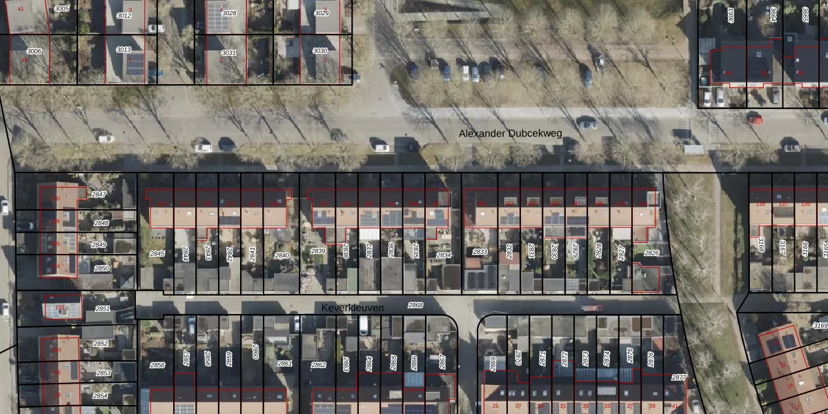 Gebruik de zoekbalk of klik op een perceel voor informatie over de adressen binnen dit perceel.
