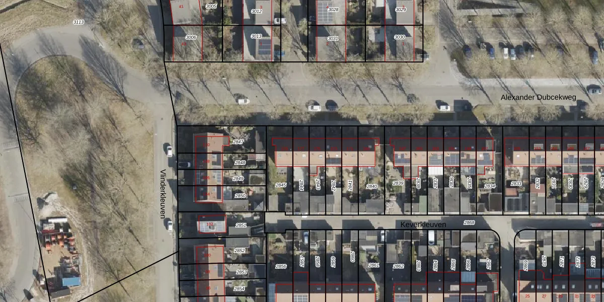 Gebruik de zoekbalk of klik op een perceel voor informatie over de adressen binnen dit perceel.