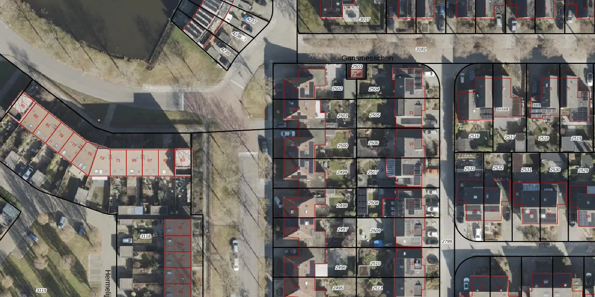 Gebruik de zoekbalk of klik op een perceel voor informatie over de adressen binnen dit perceel.
