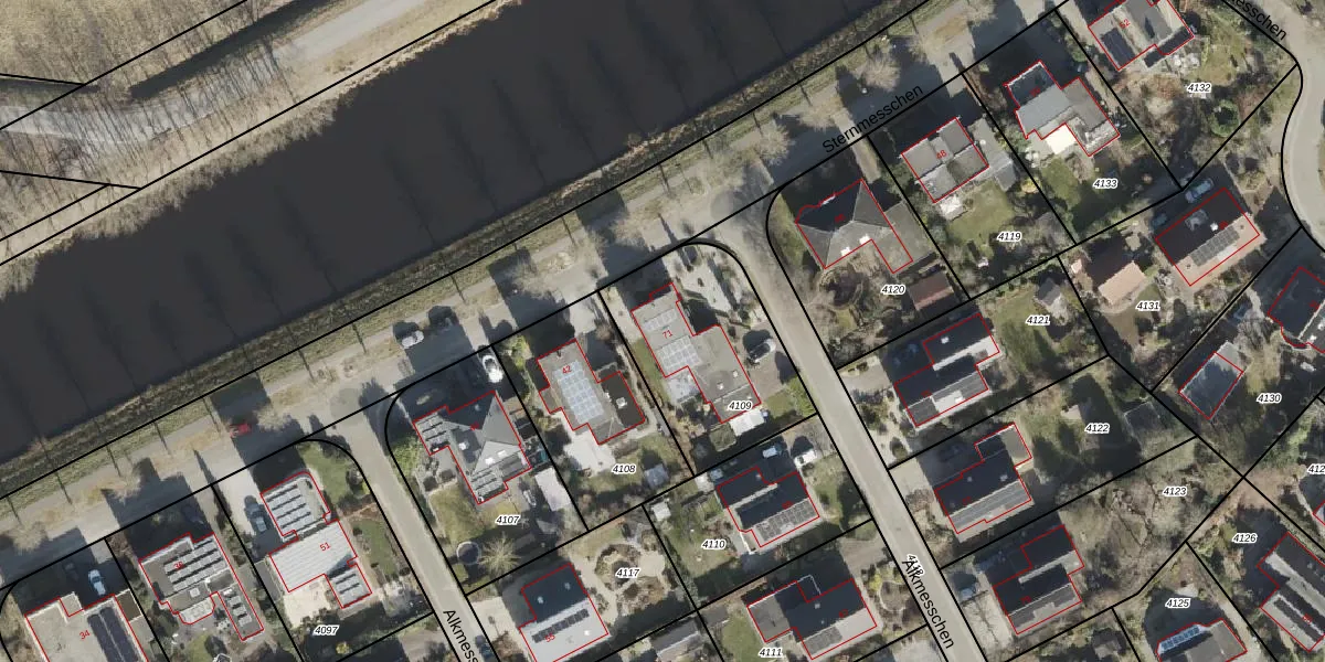 Gebruik de zoekbalk of klik op een perceel voor informatie over de adressen binnen dit perceel.