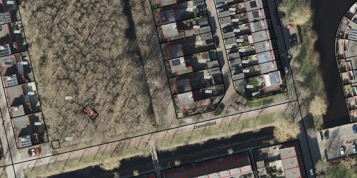 Gebruik de zoekbalk of klik op een perceel voor informatie over de adressen binnen dit perceel.