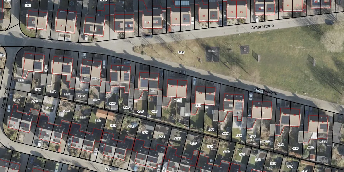 Het perceel waarop Amarilstoep 20 staat heeft een oppervlakte van 526 m². Dit is een groot perceel. De perceeloppervlakte wordt geregistreerd door het Kadaster. Gedetailleerde informatie over de maten van dit perceel kunt u vinden in het rapport Kadastrale kaart met maatvoering van Amarilstoep 20.