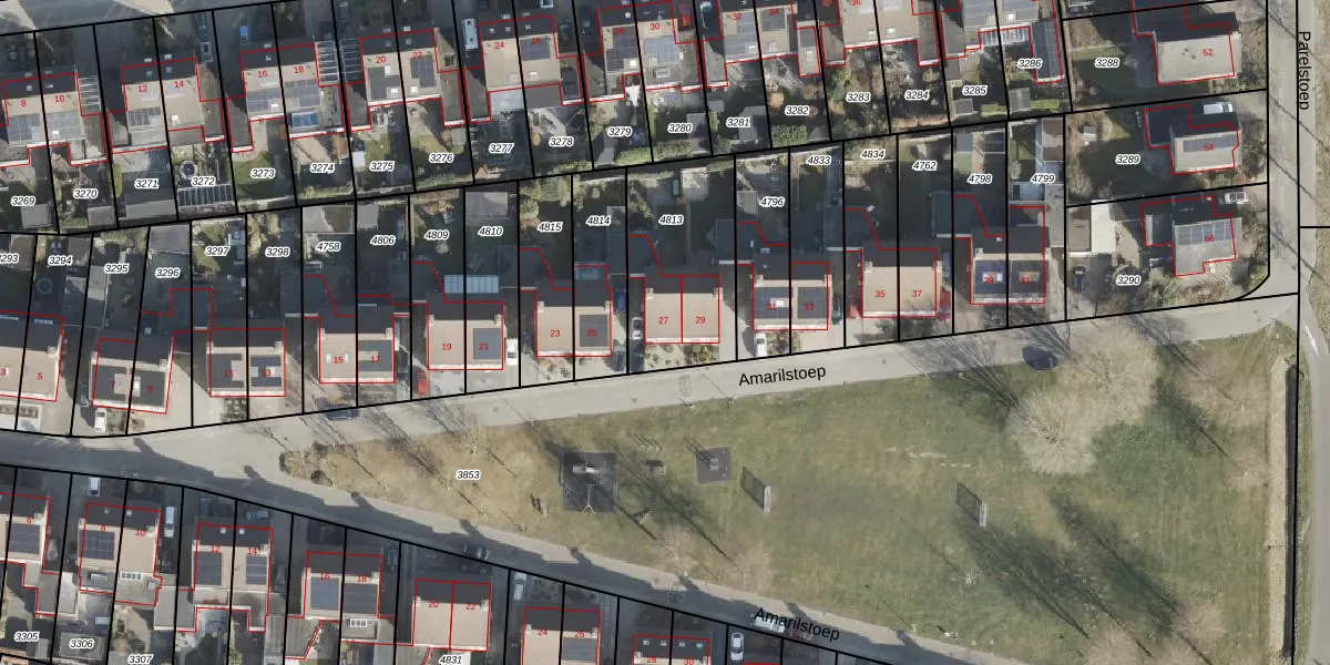 Het perceel waarop Amarilstoep 27 staat heeft een oppervlakte van 510 m². Dit is een groot perceel. De perceeloppervlakte wordt geregistreerd door het Kadaster. Gedetailleerde informatie over de maten van dit perceel kunt u vinden in het rapport Kadastrale kaart met maatvoering van Amarilstoep 27.