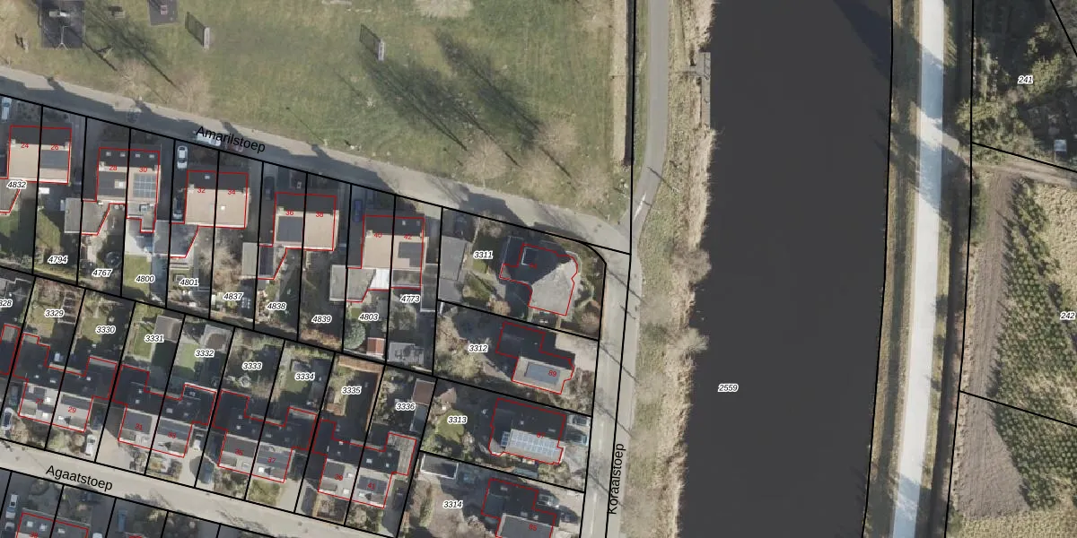Het perceel waarop Amarilstoep 44 staat heeft een oppervlakte van 527 m². Dit is een groot perceel. De perceeloppervlakte wordt geregistreerd door het Kadaster. Gedetailleerde informatie over de maten van dit perceel kunt u vinden in het rapport Kadastrale kaart met maatvoering van Amarilstoep 44.