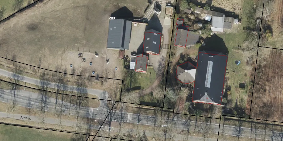 Het perceel waarop Amelte 13 staat heeft een oppervlakte van 9455 m². Dit is een zeer groot perceel. De perceeloppervlakte wordt geregistreerd door het Kadaster. Gedetailleerde informatie over de maten van dit perceel kunt u vinden in het rapport Kadastrale kaart met maatvoering van Amelte 13.