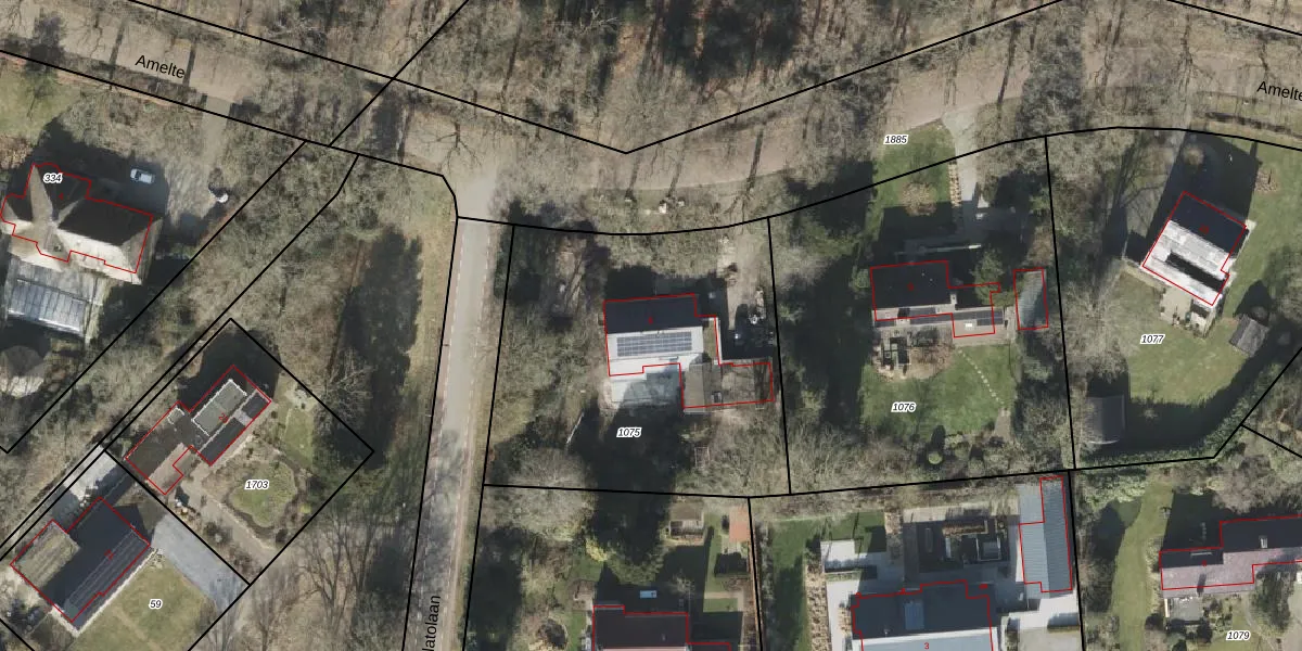 Het perceel waarop Amelte 6 staat heeft een oppervlakte van 1758 m². Dit is een zeer groot perceel. De perceeloppervlakte wordt geregistreerd door het Kadaster. Gedetailleerde informatie over de maten van dit perceel kunt u vinden in het rapport Kadastrale kaart met maatvoering van Amelte 6.